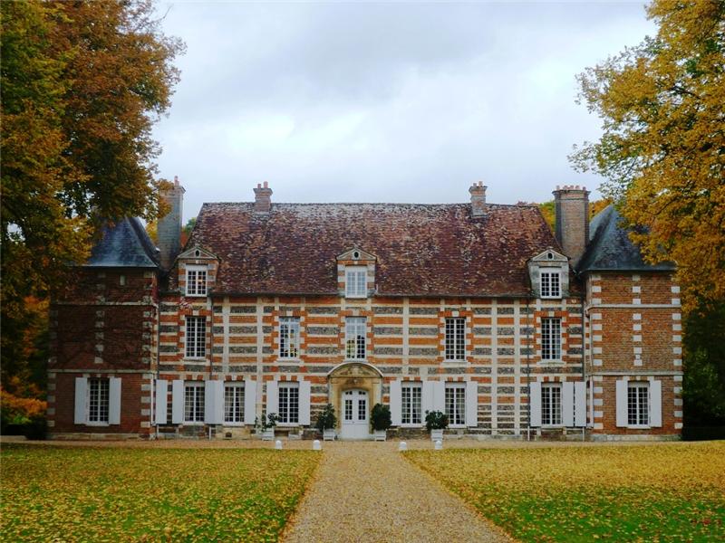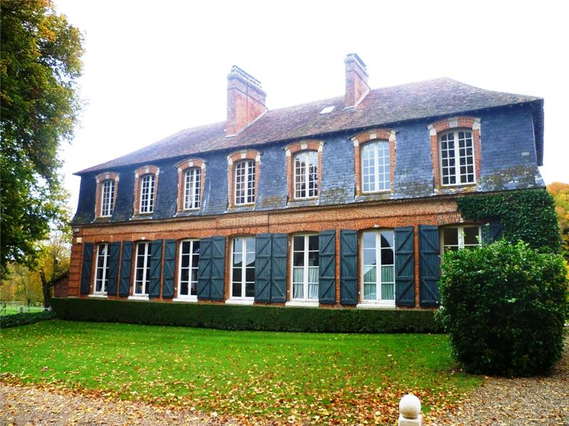 This property has recently come up for sale – it’s less than an hour west from us, deeper into Normandy. A medium-sized château and typical of the style around here, built in brick and stone. It has beautiful grounds, stunning outbuildings, a pool and a lake!