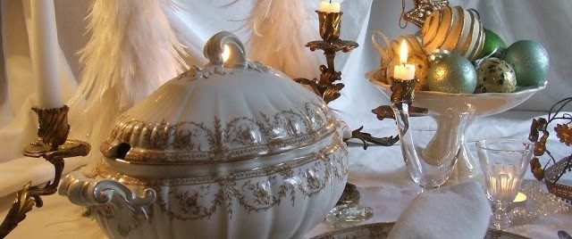 Oh, my. What beauty you've assembled here. I personally like the vignettes or snippets of a table rather than the entire view. Somehow focusing on the details makes it all the more interesting. These images are full of inspiration. That tureen is absolutely stunning. ~ Sarah