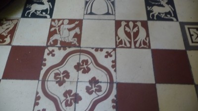 In most of the old houses around here if you let your gaze drop to the ground, you’ll find that you are standing on an old 19th century decorative tiled floor. These tiles are tough enough to resist to most conditions, and even when walls need re-plastering or the actual floor level has moved, the tiles can be retrieved and relaid straight.