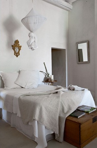 Another example of French understatement, less is more. Simple materials, neutral colours, comfort in textiles with looking for anything fancy.   The overall effect feels soothing to me – what do you think?