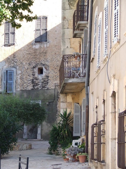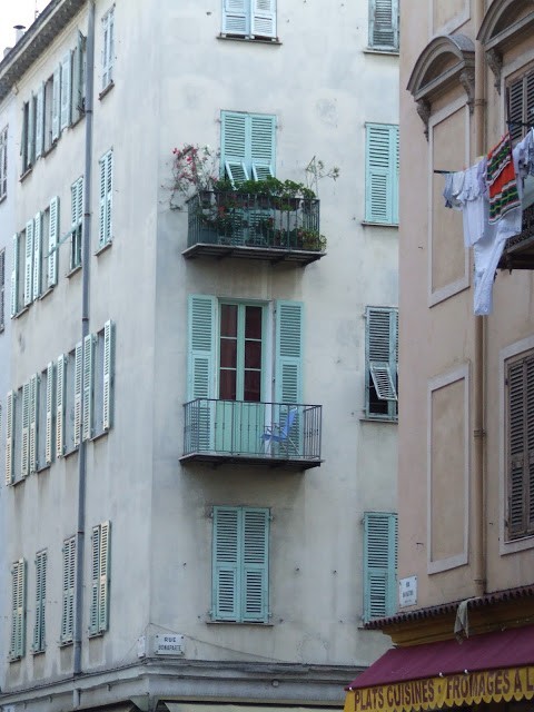 I've never seen that feature found on shutters in the south of France before. What a clever idea. I love the little heads that hold your shutters back and love the blues in that last photo.
