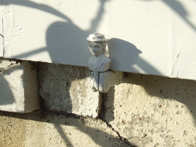 And to keep the shutters open, flat against the wall there are ‘arrets’, on our house we have these sweet little faces holding the shutters back.