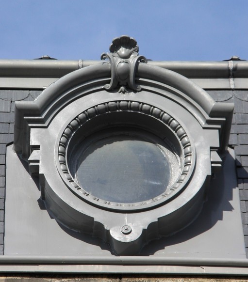 My favourite œil de boeuf are zinc, sometimes simple and sometimes gloriously ornate, with motifs such as this oak wreath.