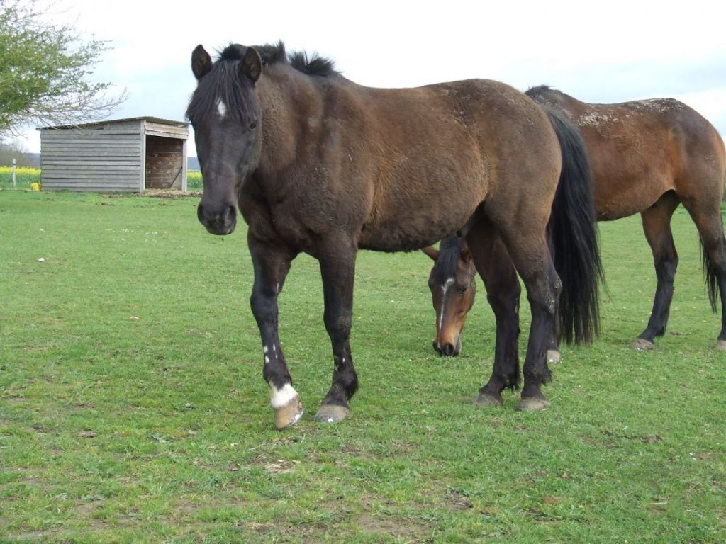 It is always the pon, who sees me first, and makes that soft snorting noise that says “oh, there she is, wonder what she’s got for us”. The horse is always slower to react, but when he realises his pal may get to me before him he kick-starts with an energetic buck and canters over.