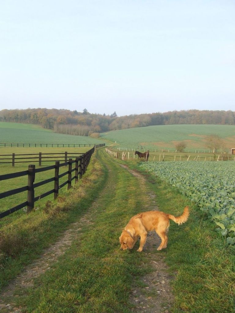 We can stand like that for a while, Iris walking around me saying “so when are you going to feed us” and Jacquard with half shut eyes, drifting away into an ecstatic snooze and gradually leaning on my shoulder until his weight becomes uncomfortable. While this is going on Gibson is nose to the ground, gleaning helpful information on any animals that went through the field in the night.