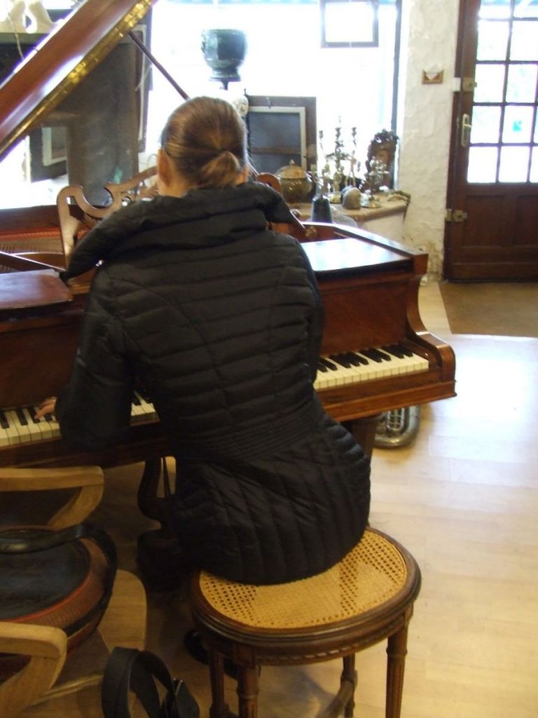 In one, she considered a baby grand piano …..