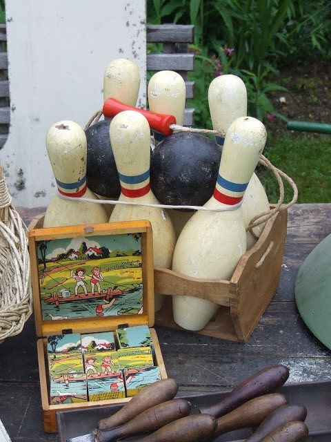 Oh man, why am I not in France??? My husband would love those old skis and I like the blue fairground sign, bowling ball set, the drawers…. are you getting the message? Wish I was there but I am by way of your beautiful blog.