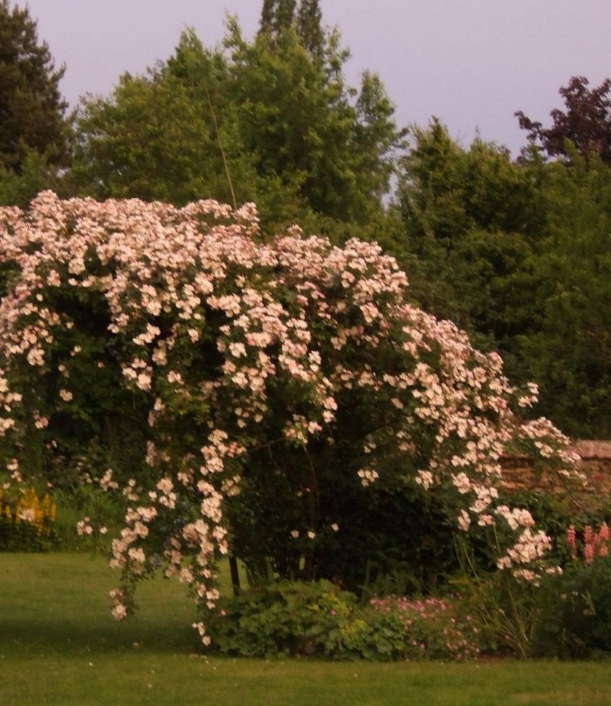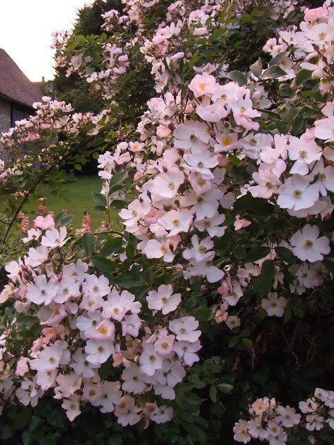 Although the weather here continues to be moody, we have had a couple of lovely evenings here this week with the most incredible light at dusk. Pretty hard to convey via photo, but I tried to capture the mood, and make the most of our climbing Bobbie James rose which is doing its best to steal the show![blank]
