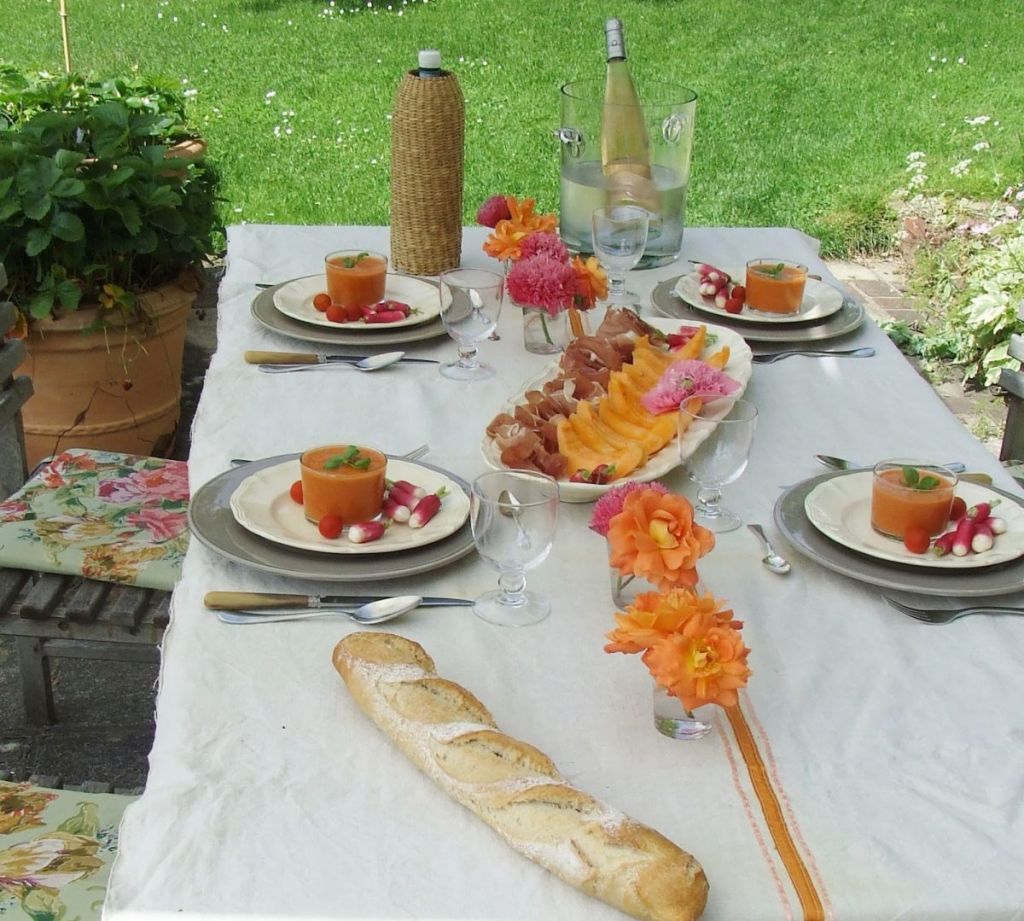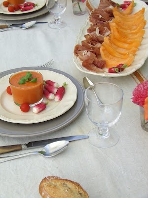 Is that gazpacho? And prosciutto with melon? Heavenly, Sharon. A perfect al fresco luncheon for those great guys. Sending love….