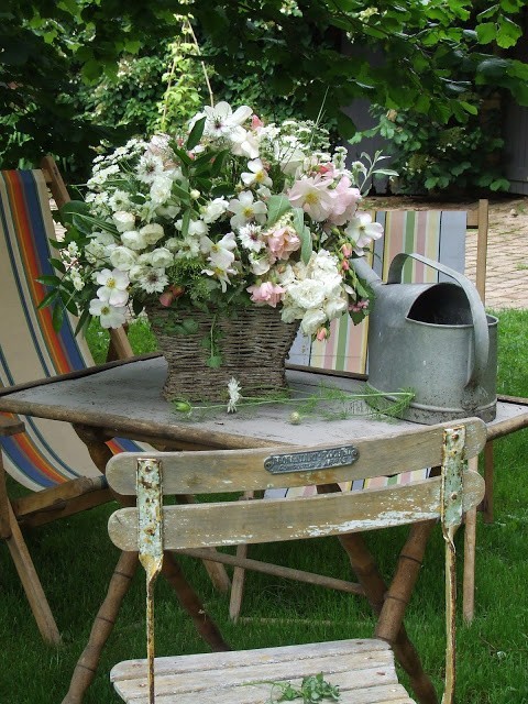Stunning. I love baskets overflowing with flowers and the watering can is a nice touch.