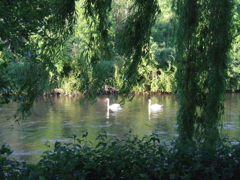 Sitting outside on a summer evening here, is quite wonderful. The river running by and the birdsong is about the only sound to be heard. Today there are some great trees and a good basis in the garden, and with a little TLC it could become quite spectacular.