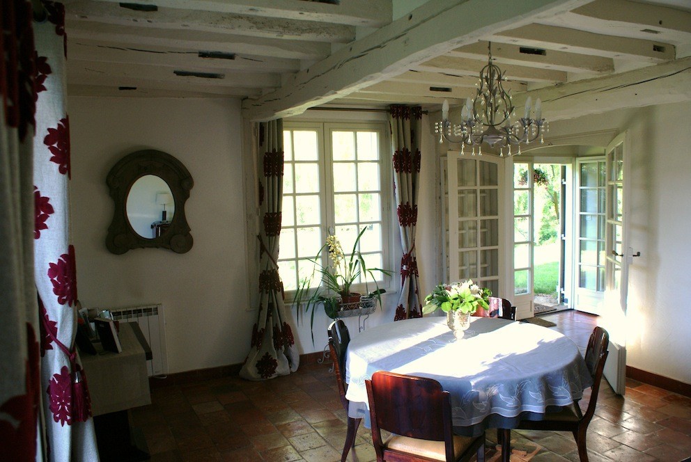 The house measures about 120 square meters or 1300 square feet, and the overall property around 7000 square meters, or 1.7 acres. It was built in the 50’s, and a lot of old materials were used, which is why it has such an authentic air. I particularly appreciate the old roof tiles, typical of traditional houses in Normandy.