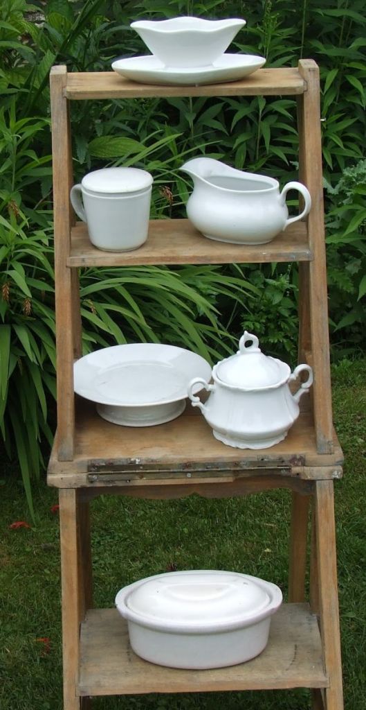 Happy to find these matching vases from Monaco, and a fun selection of white china!  Especially since I found a wonderful chair that folds out to become a little ladder – I’ve always wanted one of these!