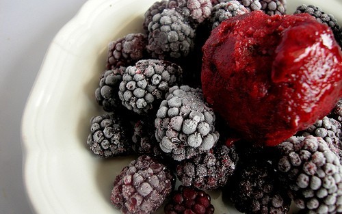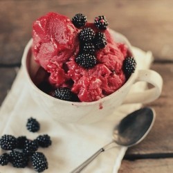 I recently acquired an ice-cream/sorbet maker from a friend for helping her move house. So far I've only managed to make pear sorbet, but seeing as blackberry season is upon us, it would be crazy not to try this recipe!