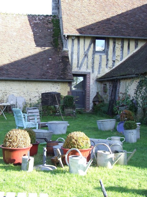 Love those watering cans and that little glass dome. What a great weekend combining shopping and country!