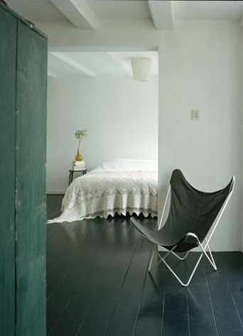 I think white painted floorboards look especially nice in a beach house where shoes would be kicked off at the door and sand sometimes brushed off the feet. The black painted floorboards look really classy but I'd only have them in a bedroom. I think painted floors in a bedroom would be easier to take care of and in general I prefer more traditional stained timber floors in living areas with rugs.