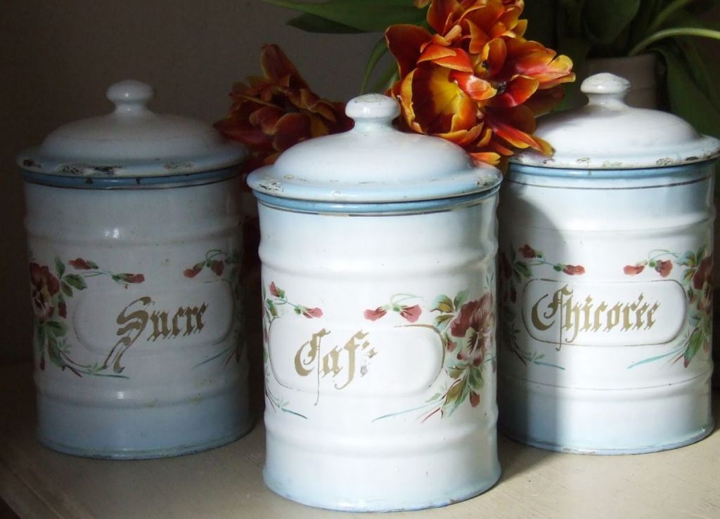 [blank] Anyway back to the goodies I brought home yesterday …. I found a selection of kitchen items ….to begin with I was charmed by these old canisters…..[blank]