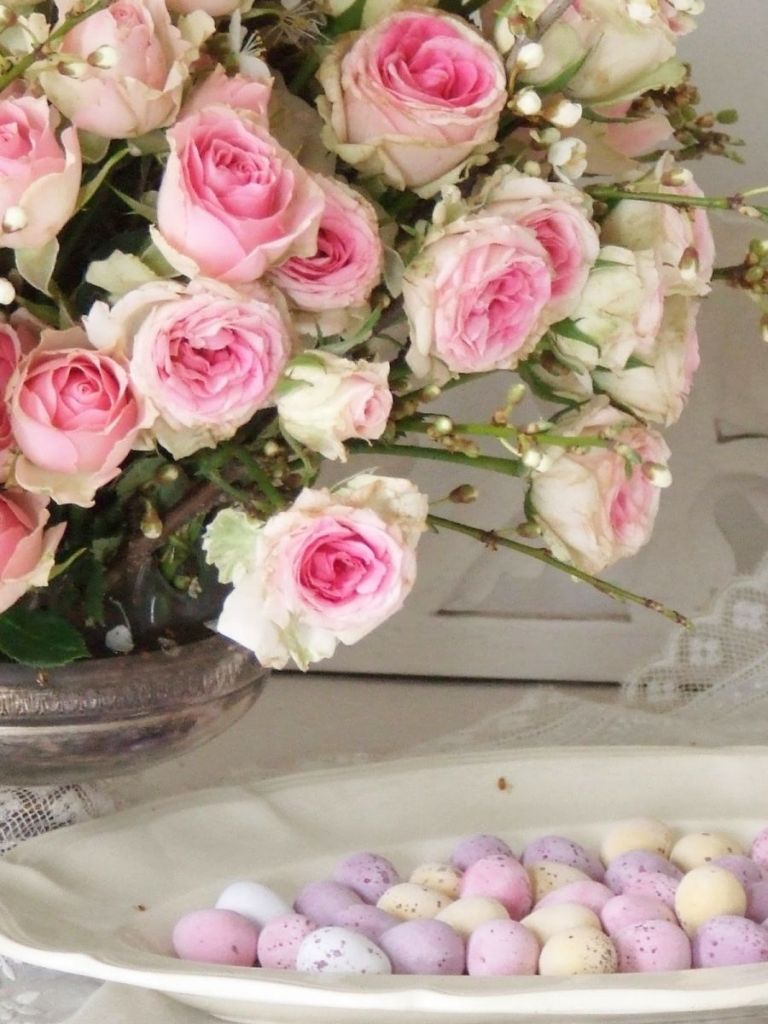 Gorgeous flowers – and candy eggs! Easter Blessings to you and your family, Sharon.