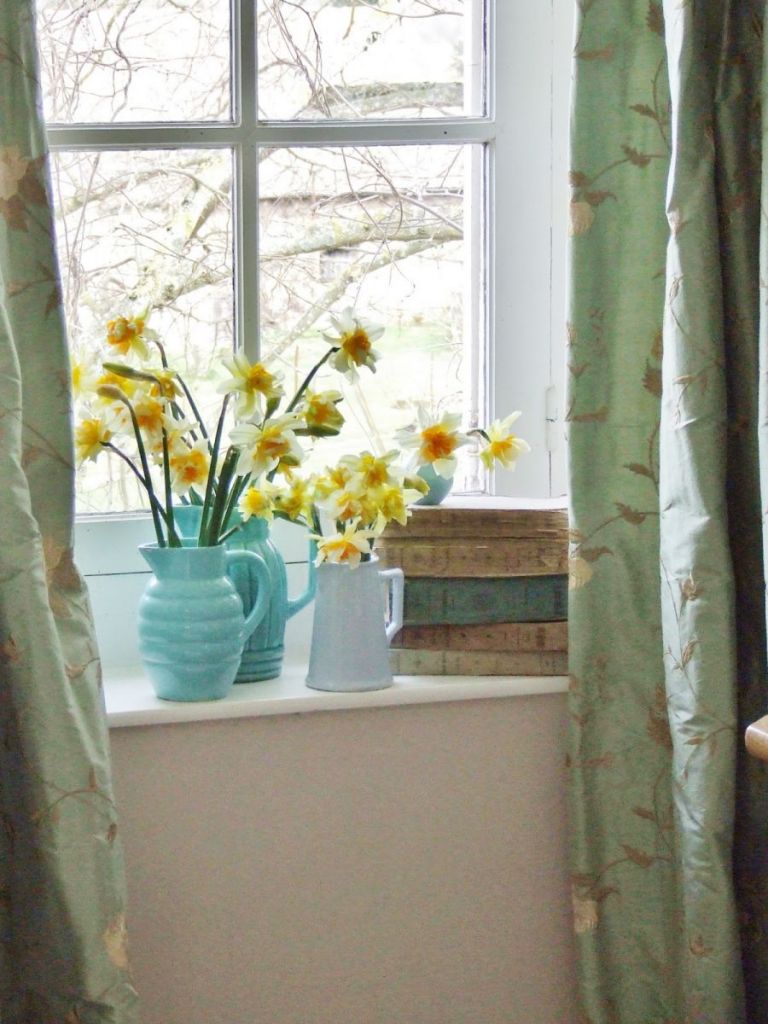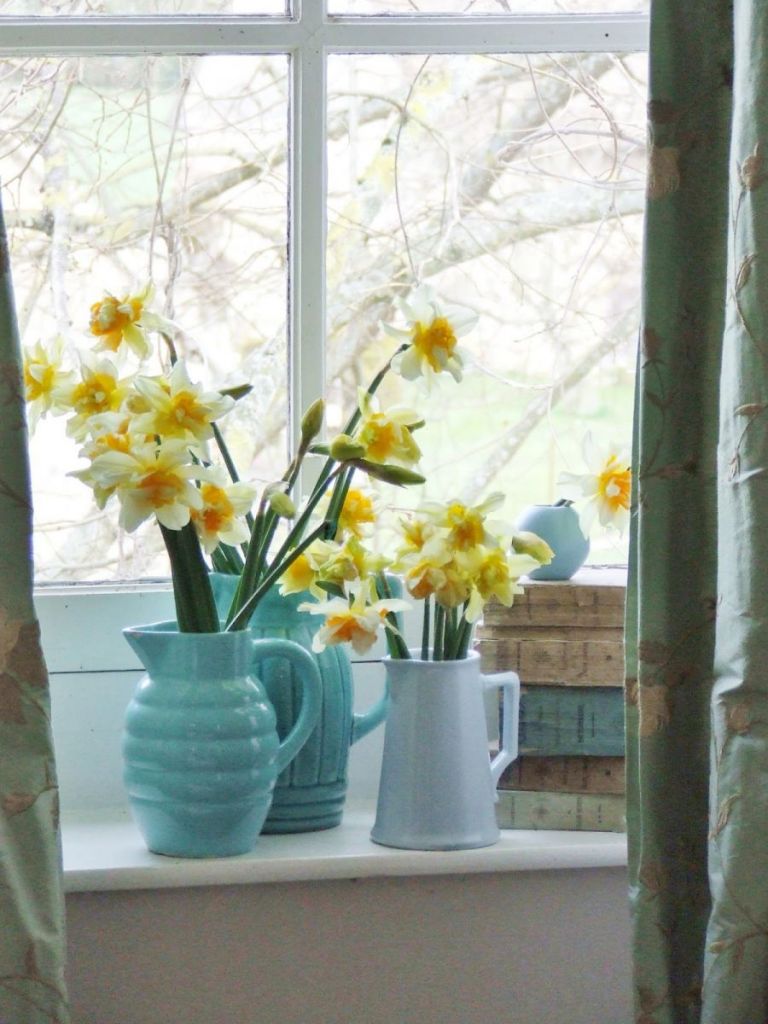 So glad to see the daffodils in the pitchers on the wide French window sill… Window sills in American homes are often nonexistent. Seeing yours reminds me of the appeal of the solid construction of older French homes.