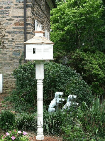 My husband and I got married last summer and also moved into our forever home. Luckily for us, our new house included an expansive back yard complete with a beautiful fish pond surrounded by plantings and trees. The fish pond attracts various animals, including neighborhood cats, our dogs, and of course, darling birds. We have been searching for just the right birdhouse and this Williamsburg-style creation is so unique and gorgeous – perfect!!!