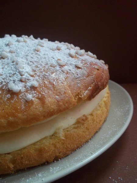 [blank]The lightest of brioche, cut in half and filled with a creme patissiere, delicately perfumed with orange flower.