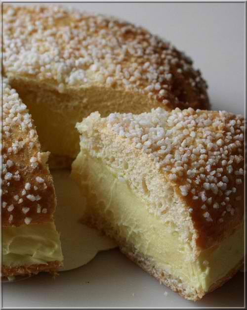 I was told by a patissier in Saint Rafael on the Cote d'Azur that this tarte was made by the Polish mother of a patissier in Saint Tropez…..and it took off from there! As you know, the French don't really have 'cake' in the same way that the Eastern Europeans / Germans do. Only in the last few years have we seen it in the Paris/Normandy area, and very rarely at that. The cake version I had in Saint Rafael – and only recently had the brioche. I've never seen anything resembling a flaky biscuit over here in France (is there one?) I know about biscuits because my mother was from Kentucky!