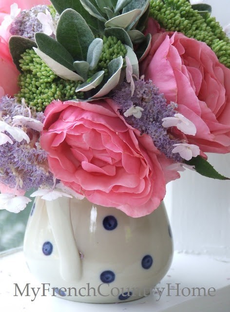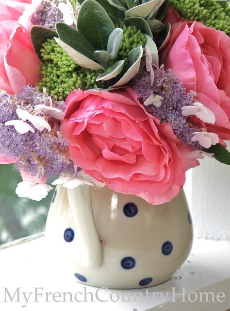 Such a pretty bouquet, and I love the polka-dotty pitcher.