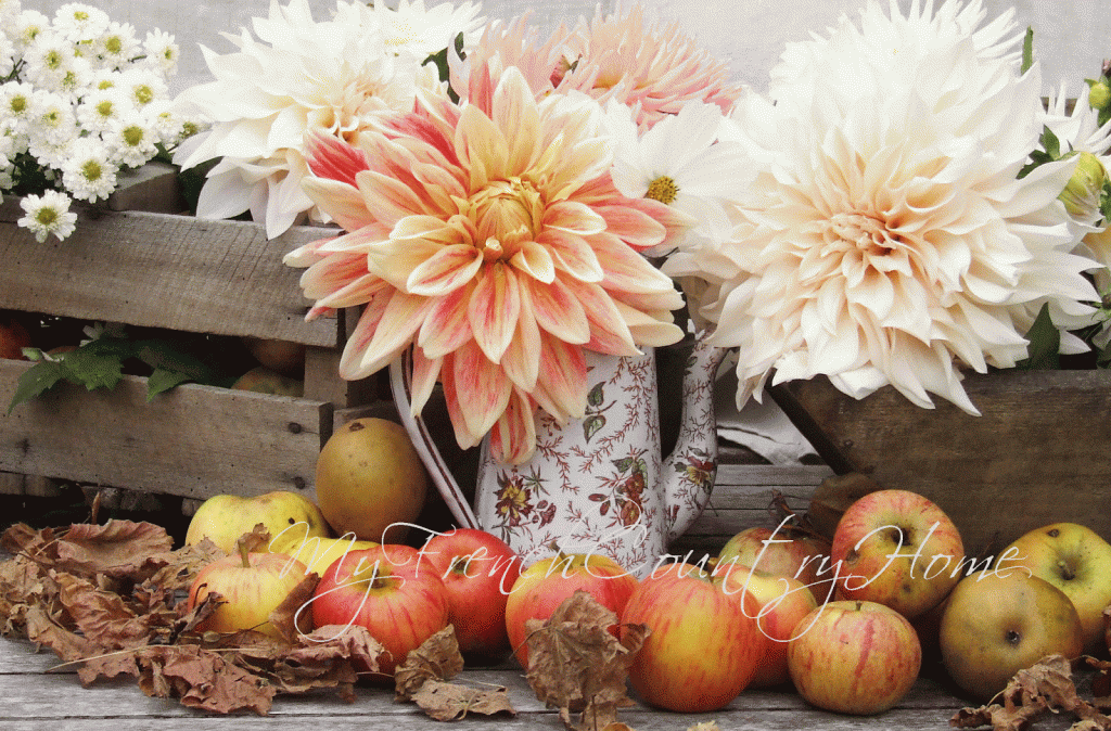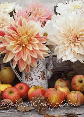 Gorgeous dahlias & those apples! Apple pie, apple muffins, apple cobbler, or simply a juicy bite of an apple, yum.