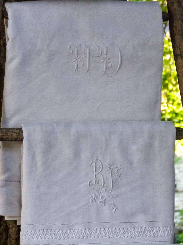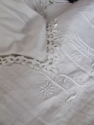 [blank]The many beautiful monogrammed sheets and table linen that I am so fortunate to find here, are all the reminders of the 19th century wedding trousseau. [blank]
