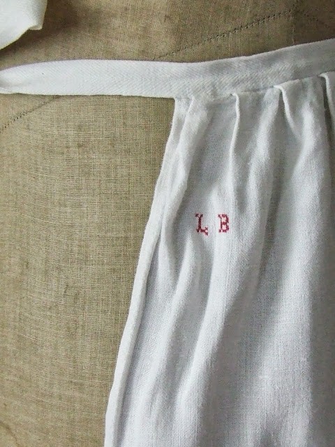 [blank] But the monogrammes were not always huge and fancy; on aprons and teacloths, or on the heavier homespun sheets they are often quite small and discreet, often just a simple red cross stitch. Here the use of the monogramme was more practical than decorative, so that come wash day, maids could keep track of their mistresses linen, when the village washing was being rinsed collectively at the wash house.[blank]