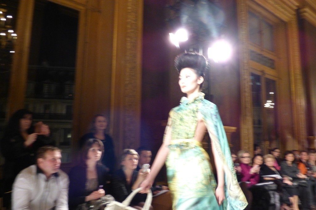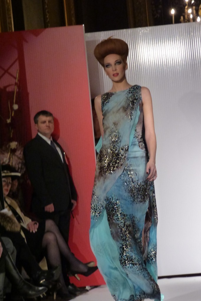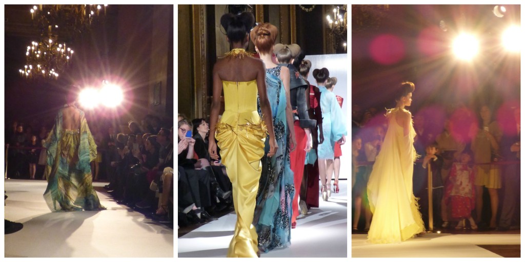 Elegant venue, elegant clothes, and marvelous photos, thank you. I’m so glad you saw one of the beautiful ones, as some of the pictures of recent collections have been, um, distressing. I rather like the hairdos; they seems something of a cross between geishas and Belle Époque.