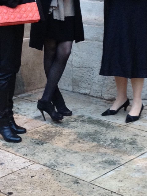 Oh yes, and what did I wear in the end ….. well I followed your advice mostly…. I wore black pants and a black cachemire v-neck with a pretty silk scarf, high heels and a grey coat. I felt at ease, elegant and discreet, which is exactly what I aimed for. No, you don’t get a picture of me because I don’t really do that, but the outfit looked pretty much like this