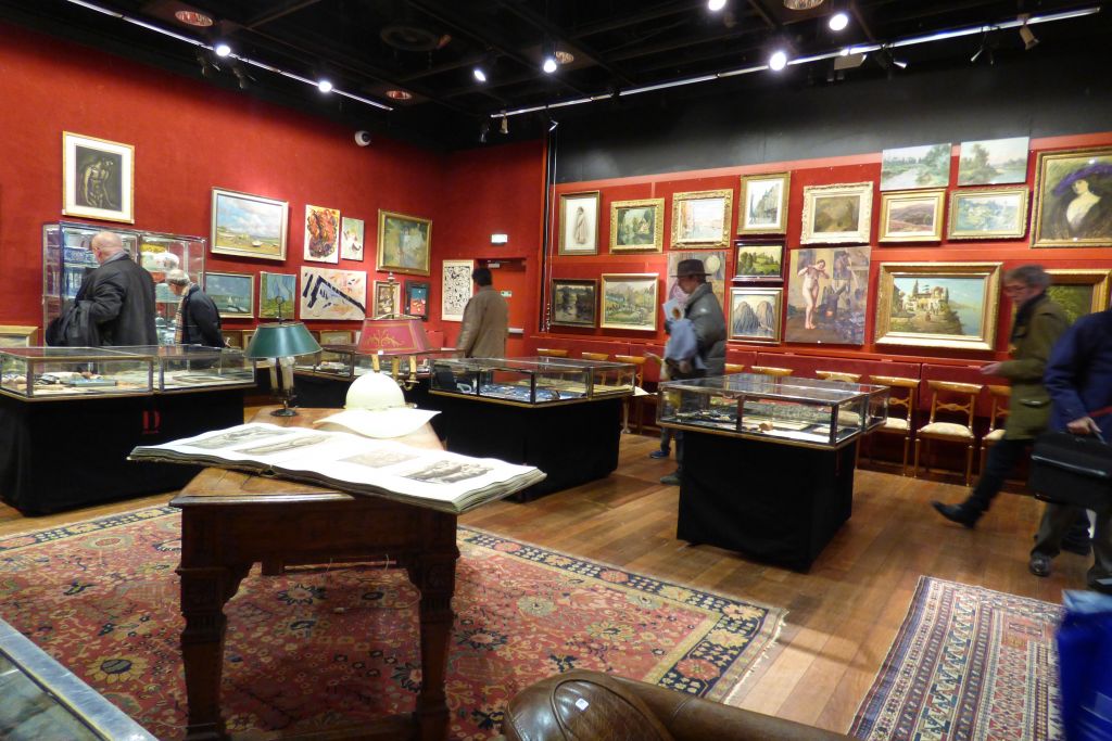 Drouot, the auctioneers, is open to the general public. Most mornings you can go in and take a look at the goods that will up for bids that afternoon. It’s not only paintings, there is furniture, jewellery, textiles and rugs too. There were a couple of rugs here that I would happily have taken home with me!