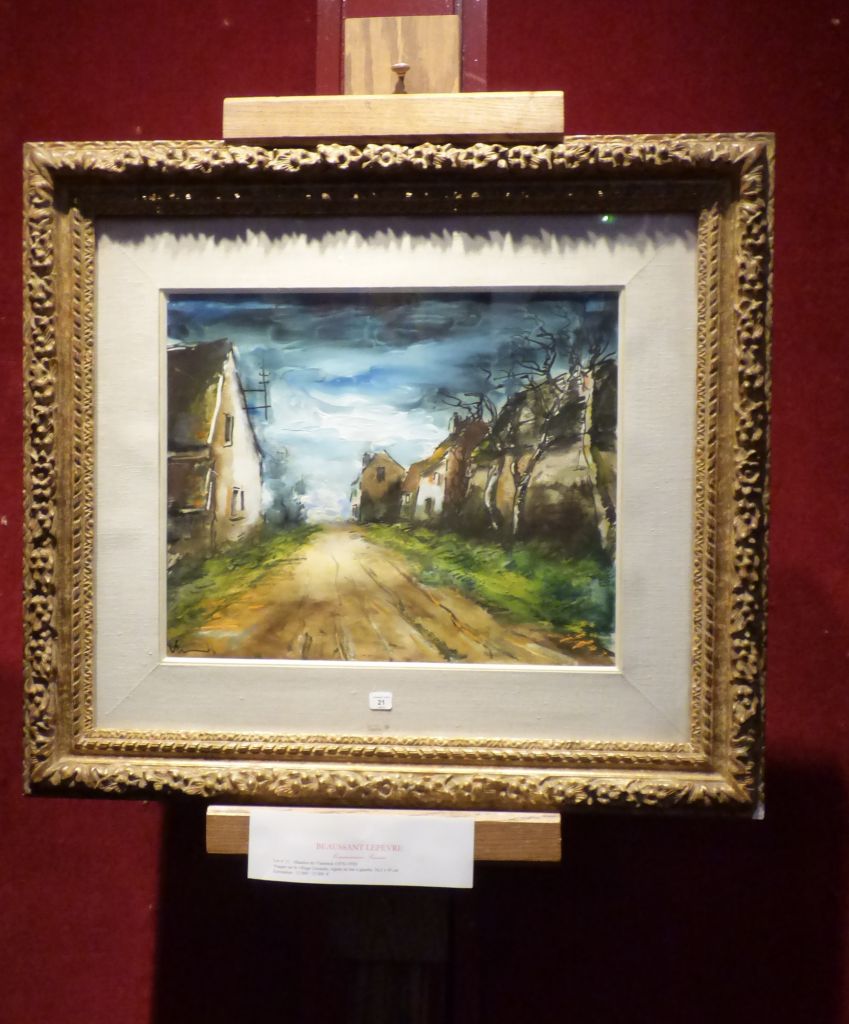 Finally Erell found a painting she liked enough to bid on. This charming village scene from Brittany in the west of France. It was in excellent condition ( she unhooked it from the wall to check), but she knew nothing about the artist so our next stop was the national art library to discover what it may be worth.