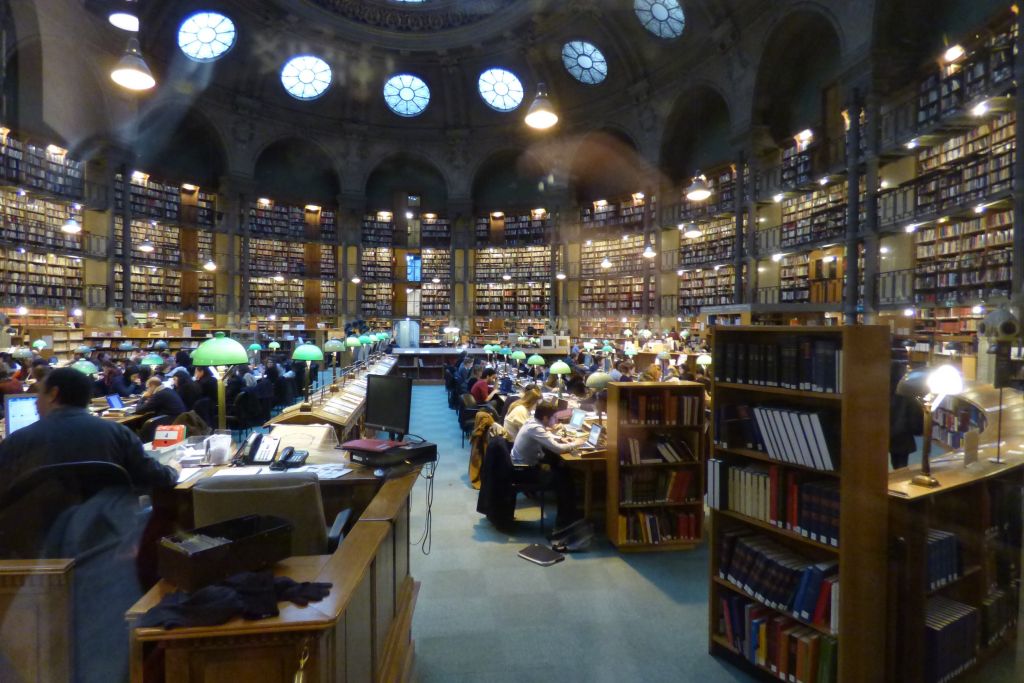 Here is the inside of the library, where it is of course totally forbidden to take pictures but you know the risks I am prepared to run for your entertainment! The library is only open to art students and to professional art dealers, the huge beautiful room was packed with silent workers, bent over art reference books, and computer screens.