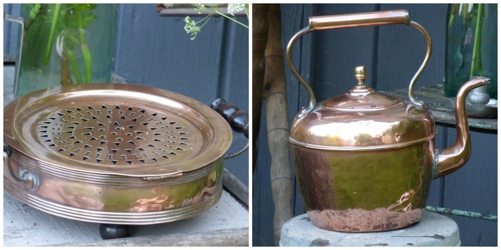 I think the copper kettle is grand, and the copper chaffing dish delightful and the verdigris metal platter is divine.