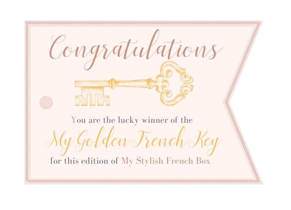 And finally, over at My Stylish French Box, we have some very big news. Inspired by the Golden Tickets in Roald Dahl’s Charlie and the Chocolate Factory, we have created the My Golden French Key. In each edition of our subscription boxes (February, May, August and November) there will be one single golden key tucked in to a random box. The person who finds the key in their box, will take a picture of the key and send us the photo with an email. In return they will receive a gift from one of our favourite French brands, with a retail value of over $300.