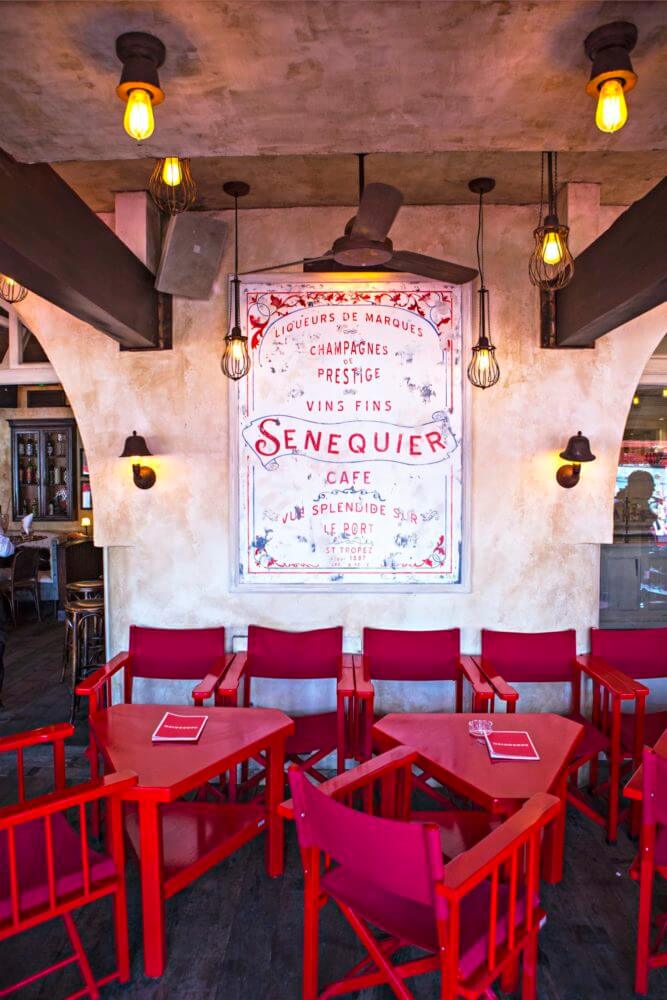 The iconic red facade of the café restaurant on the port. Sennequier is an institution, and I love morning coffee there, watching the town wake up.