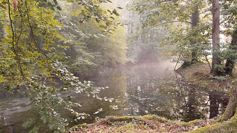 This morning I did just that, and as I headed down towards the river, the morning mist draped the valley in a mysterious veil, through which the sunshine peeked to play with the shadows. Everything felt soft and calm. The birds were in good voice, but at times the mist was so thick I couldn’t see them.
